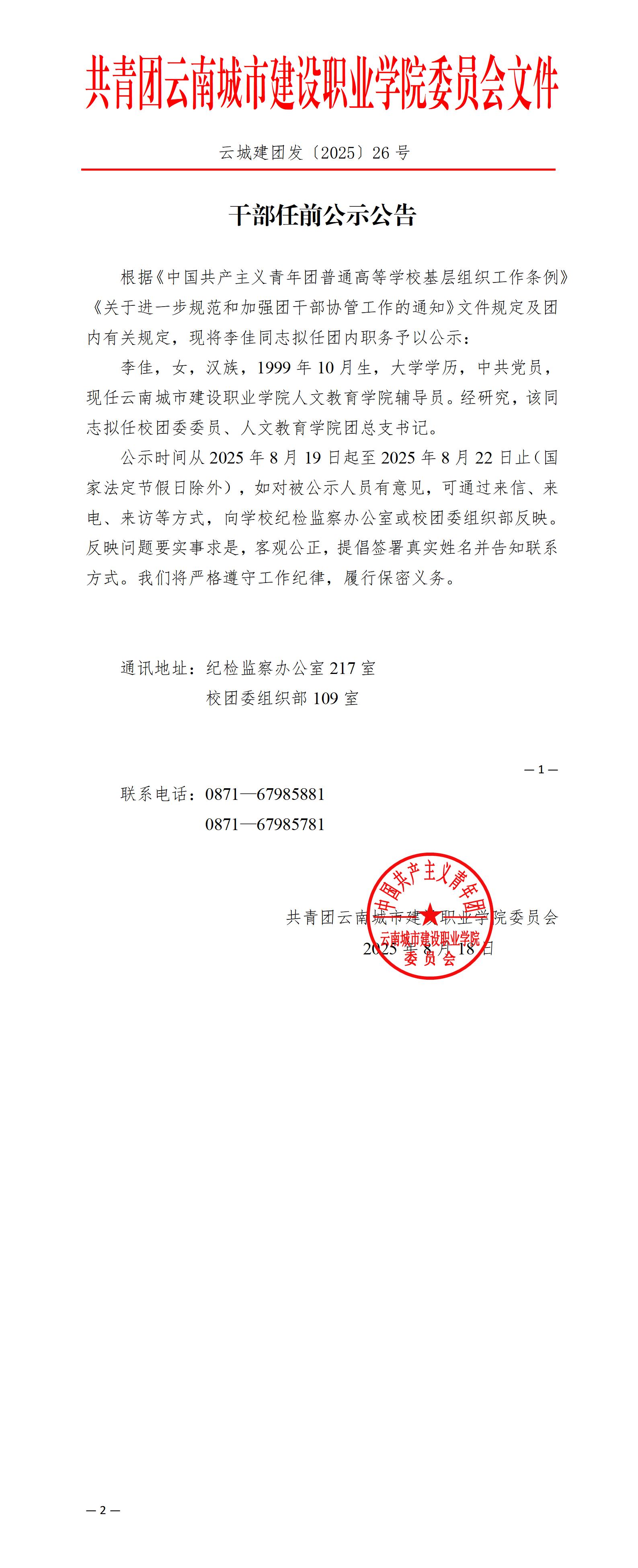 云城建团发〔2025〕26号 干部任前公示公告