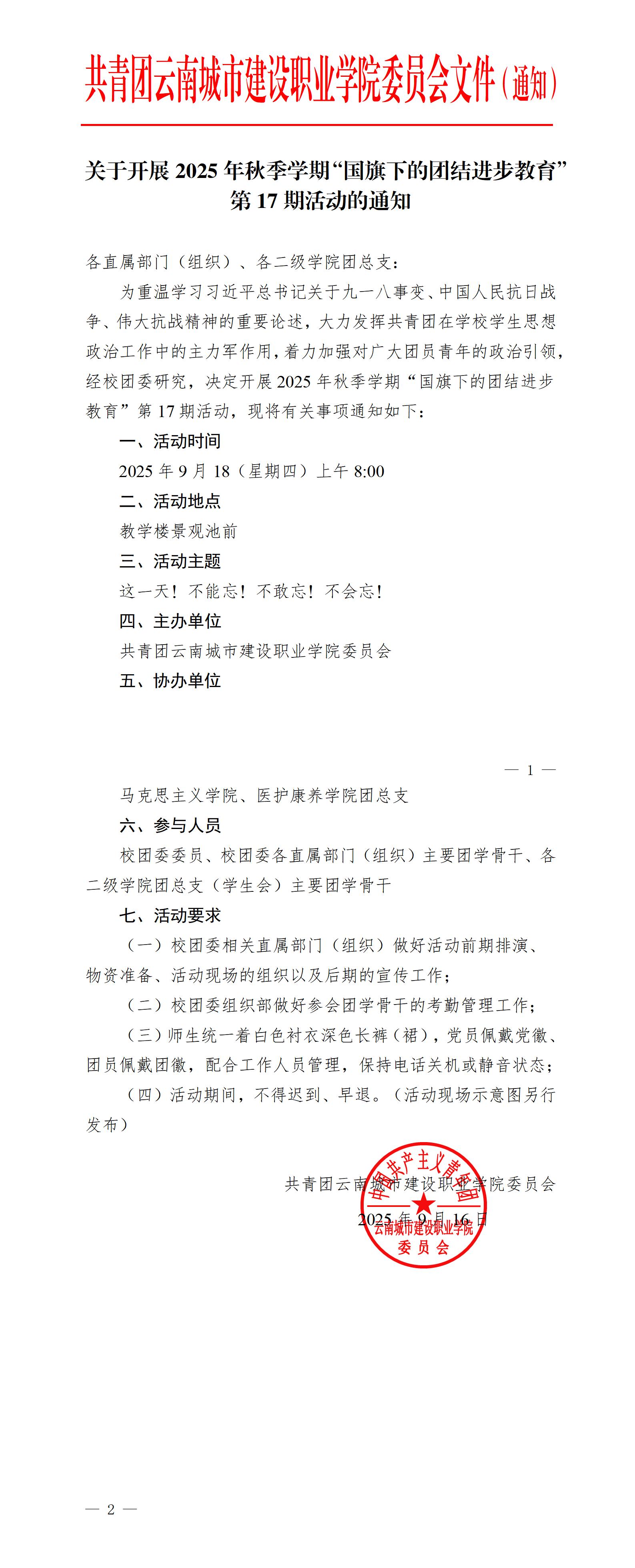 关于开展2025年秋季学期“国旗下的团结进步教育”第17期活动的通知