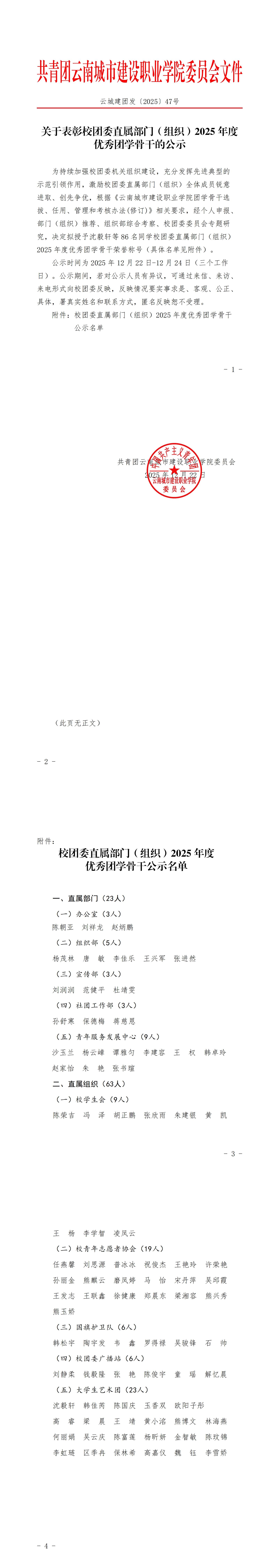 云城建团发〔2025〕47号 关于表彰校团委直属部门(组织)2025年度优秀团学骨干的公示(1)